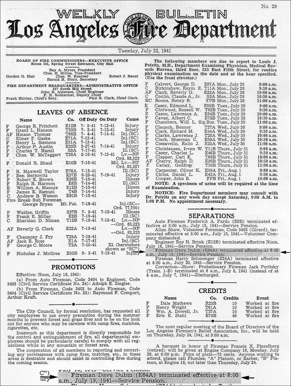 Captain David Dubin retired in July 1941. Shortly after the bombing of Pearl Harbor Dubin moved to Hawaii and took over the firefighting operations at Ft. Ruger, Ft. DeRussy and Black Point. |