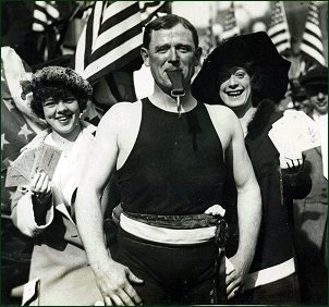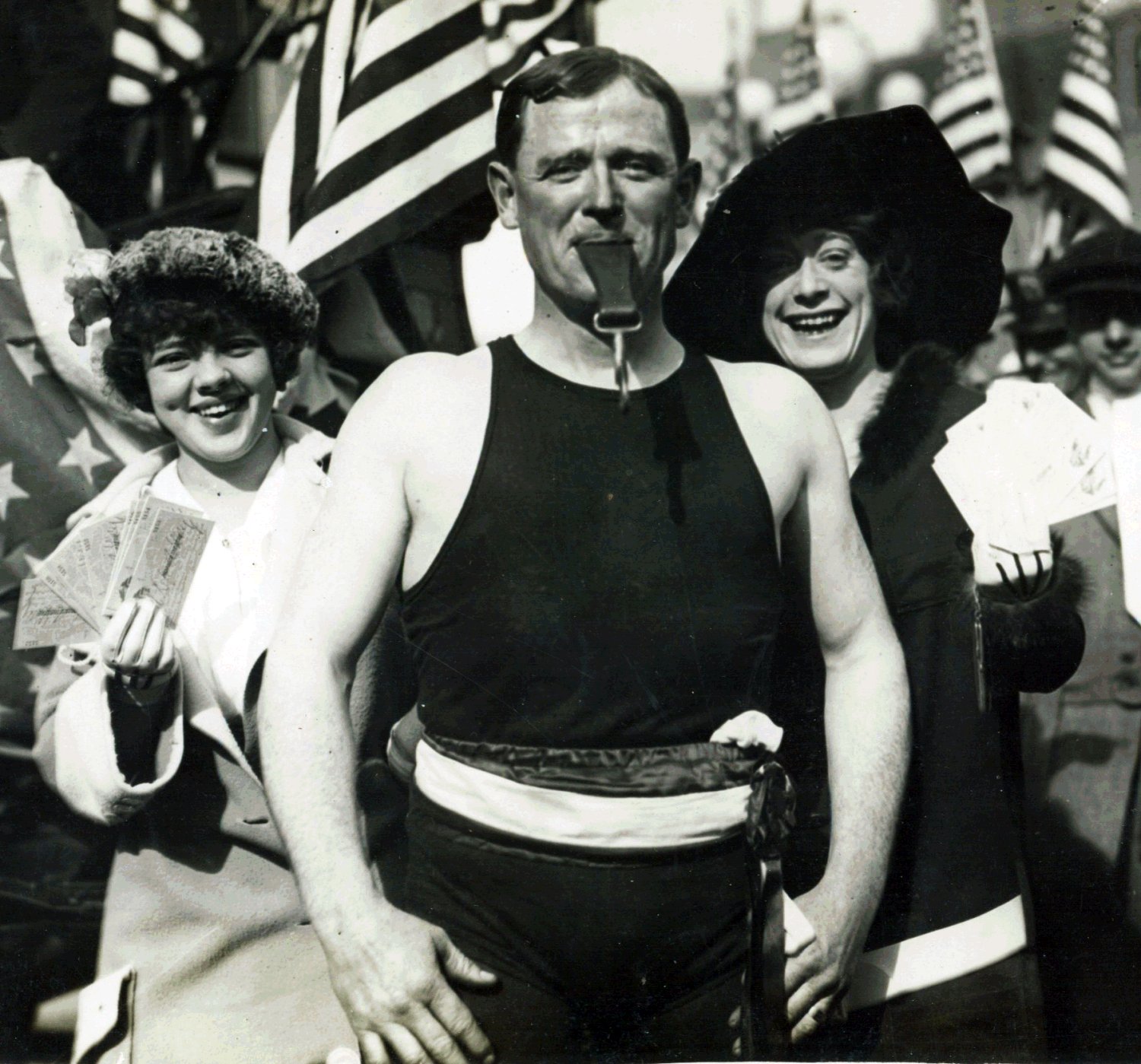 tons and carrying a dozen people down Broadway with his teeth.