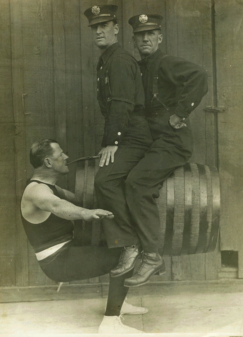 to the big hose wagon between his teeth promptly at 12 o'clock