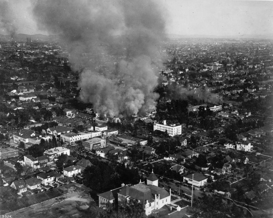 11, 1920 The Shrine Auditorium was destroyed in thirty minutes during this three-alarm blaze. Six firefighters were nearly killed by collapsing brickwork. |