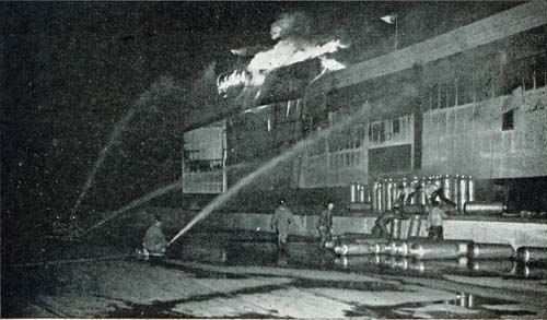 of HARD fire fighting. At about 8:00 a. m. overhauling operations were