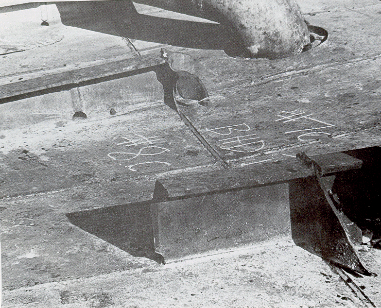 e. The blank on the end of one vertical riser, which had been attached to the exterior of one of the midship kingposts, had a threaded hole in it of about 1 3/4 inch i.d. There was no nipple or plug in it and the inside threads were intact and rusted and appeared not to have been used recently. One washout nipple on a transverse branch vent line, found underneath #11 center tank, had no cap on it. f. Nearly all branch lines were broken off from the common header pipes, and most of the P/V valves found had their tops broken off. g. A number of ullage screens were found with various degrees of damage. All those observed had 20-mesh wire screens (20 x 20 wires per inch.) The screens were covered by a 4 -mesh protective wire screen. h. All P/V valve housings and vent line relief valve housings had 20-mesh wire screens, most being single layer but a few were double-layered. i. The screen from one vent header pressure relief valve was badly corroded and appeared to have fallen out from corrosion, not from tearing loose. j. When the deck plating in way of #10 center cargo tank was cut up and turned over, the wheelstand for the #10 center stripping suction valve was crushed to badly to indicate the valve's position. The wheelstand for the #10 center main cargo suction valve, however, was only slightly damaged and its pointer was in the closed (down) position. Another piece of the #10 center deck plating, when turned over, had a mooring winch with wire drum and one valve wheelstand with no stem. k. Portions of the midship deckhouse and the main tank deck had penetrated approximately 16 feet into the earth, severing a 30-inch pipeline near the terminal manifold. The fuel from the broken oil pipeline fed the fire which burned throughout the deckhouse off and on for several days. This break was plugged with drilling mud on Tuesday, 21 December. An inspection of various parts of the midship deckhouse, because of the severe physical and /or fire damage, failed to reveal any evidence of a positive source of ignition. l. Pieces of deck piping, catwalk structure, etc., were strewn about over an extensive area. Most of the material found adjacent to and on the premises of the San Pedro Boat Works appeared upon close examination to have come from the afterdeck area. Most of the piping from the foredeck area, which landed on shore, was found in the area generally to southward of the midship house location. 21 |