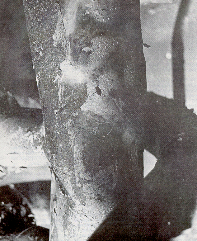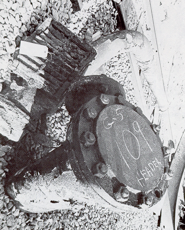 c. Examination of the deck from #10 center tank showed that the four tank-washing plates, studs and gaskets were intact and in excellent condition. Three steam pipes, about 1 1/4" i.d., and four smaller steam pipes, all of which had previously served the cargo tank heating coils, had been cut off inside the tank but had been left intact on the top-deck side. As the deck plating was cut away and turned over these pipes were inspected. All were broken off. One of the previous steam supply pipes was bent and ruptured. A close scrutiny of the ruptured area revealed that the metal there was "paper-thin." A fresh break could not be discerned. d. Examination of pieces of the cargo tank vent piping, including the branch lines and the common header revealed numerous areas of localized wastage. Several pieces were found with holes wasted through on their undersides. (See figures 7 through 8 for examples.) Examination of the area surrounding these holes revealed that the holes were primarily the result of internal corrosion. Much of this piping had a very heavy buildup of exterior paint, as much as 1/8-inch thickness in places. Various samples of the cargo vent piping and a typical P/V valve were analyzed by the Aerospace Corporation in an effort to characterize the corrosion behavior. Generally, uniform corrosion of the bottom portion of the vent piping was noted to be at least twice and at some places up to four times the normally expected corrosion rate for galvanized steel in a marine environment. Further, localized deeper pits and holes in the vent header pipes in the vicinity of P/V valve connections were attributed to either galvanic action between the steel pipes and copper products from the P/V valves or action of a hydrochloric acid solution in areas of initial breakdown of the protective zinc coating. The analysis also concluded that the corrosion holes studied were covered by a thick external paint coating prior to the explosion. 20 |