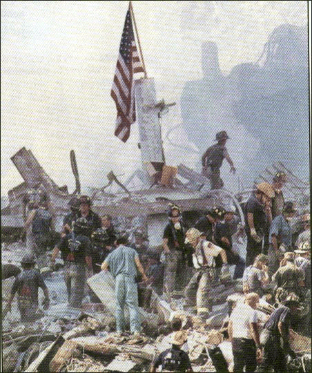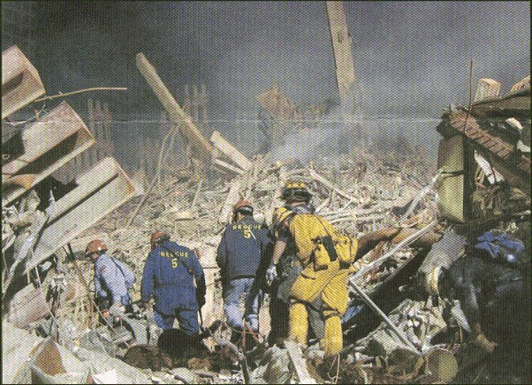 #4 once stood, steel beams have pancaked one atop the other,