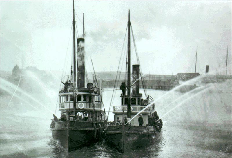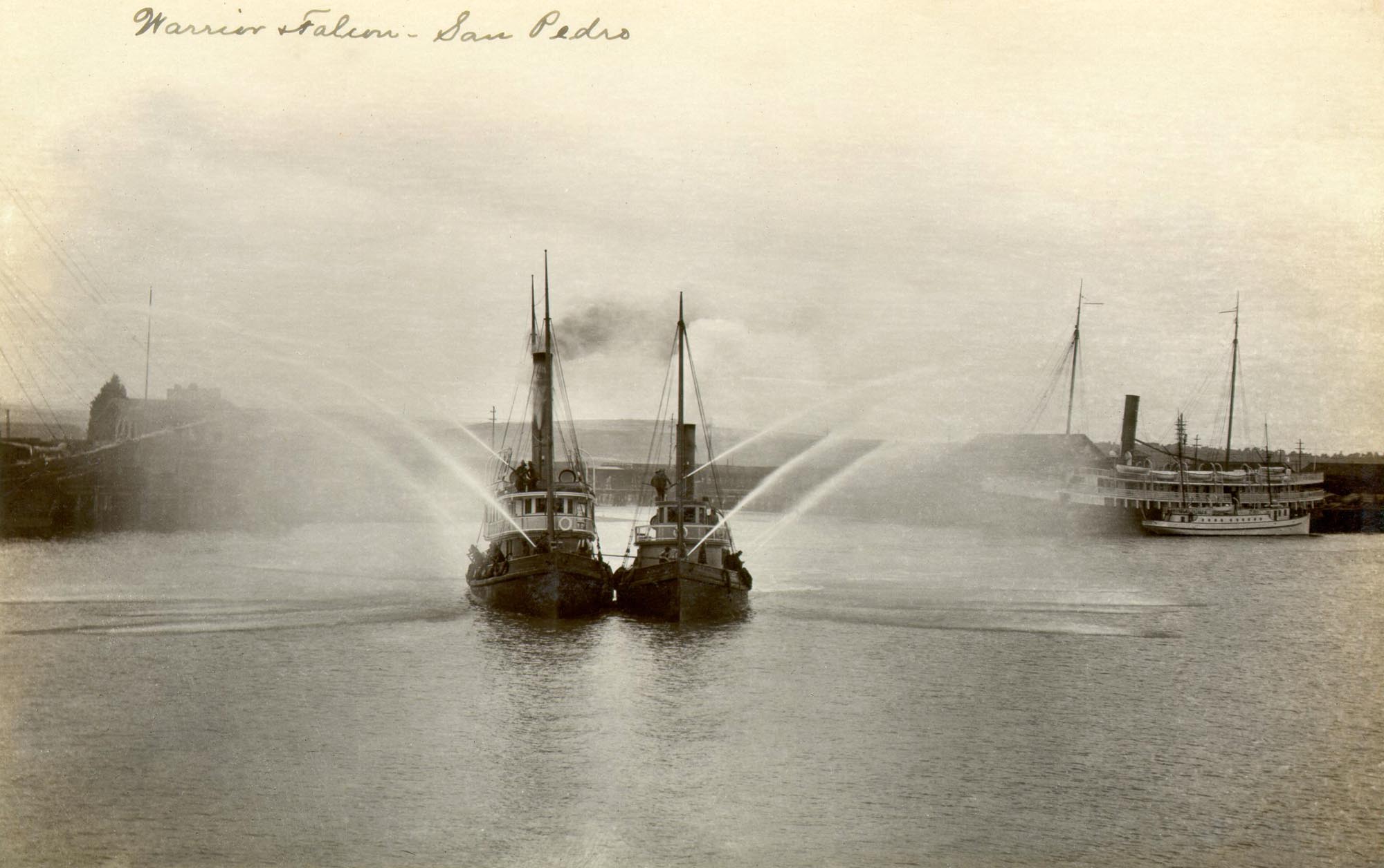Los Angeles leased these steam and sail equipped tugs, the Warrior and the Falcon, shortly after the city annexed San Pedro and Wilmington August 28, 1909, and the fire department assumed waterfront protection responsibilities.