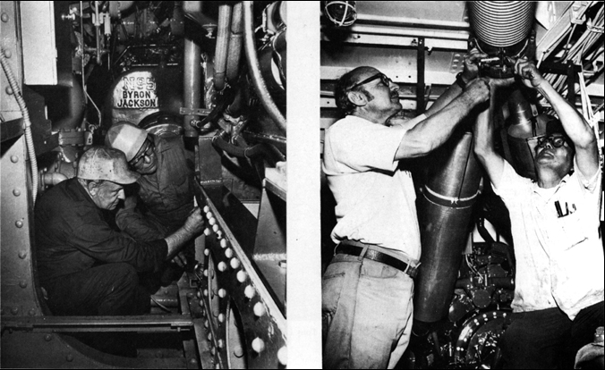 Throw in modifications to the following systems: fuel, fresh and salt water cooling, electrical, air induction, pneumatic and hydraulic; multiply all this times seven and the immensity of this project becomes apparent.