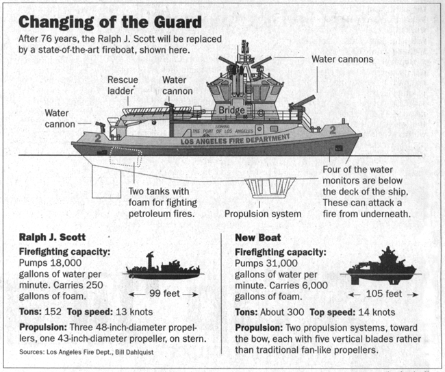 The vessel was designed for travel within the Port of Los Angeles, not the open seas, Roupoli said. And with the harbor expanding into the sea, closer to breakwaters, the Scott is hampered by an inability to navigate well through large swells.