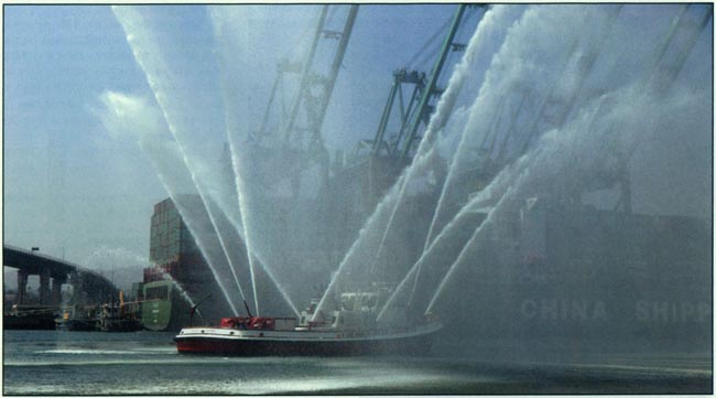 The Los Angeles Fire Department protects 43 miles of waterfront and eight thousand acres of Harbor Department Property. This includes the communities of San Pedro, Wilmington and Terminal Island. The Los Angeles Harbor boasts a bustling commercial industry of huge proportion along with extensive recreational and residential areas. Fishing, working, and passenger ships use their assigned terminals here. Pleasure boat marinas, wharfs, and ecological preserves offer visitors some fun in the sun, while commercial production plants hum along close by. The obvious diversity here creates a unique challenge in keeping people and property safe. I am proud to say that the men and women of the Los Angeles City Fire Department have done an exceptional job in doing just that. We have been privileged to have Fire Boat 4 on our team as we continuously strive to provide superior support and protection to the Port of Los Angeles.
