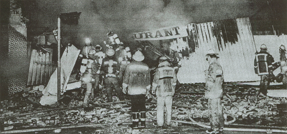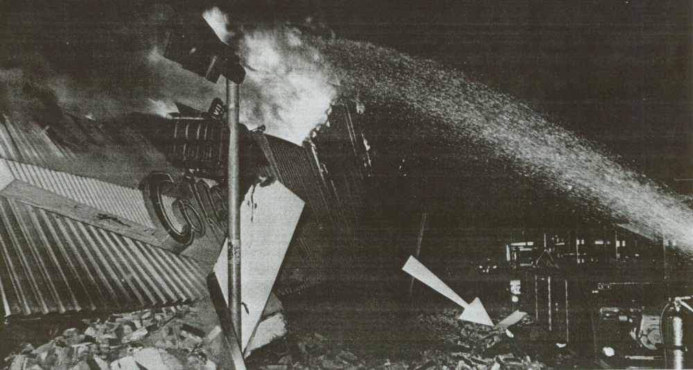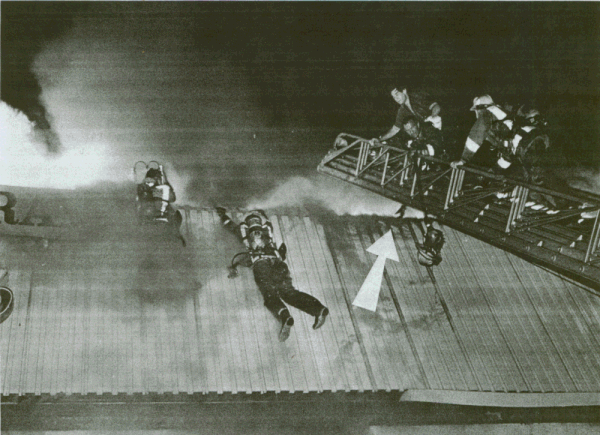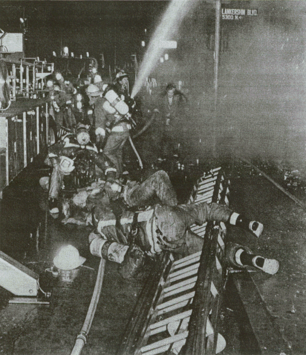 ![]() MIKE MEADOWS, L.A. TIMES Dramatic sequence of photo's showing firefighter's trying to escape from the inferno at the moment of roof collapsing. ![]() "COPYRIGHT 1981, BRIAN DIXON" |
