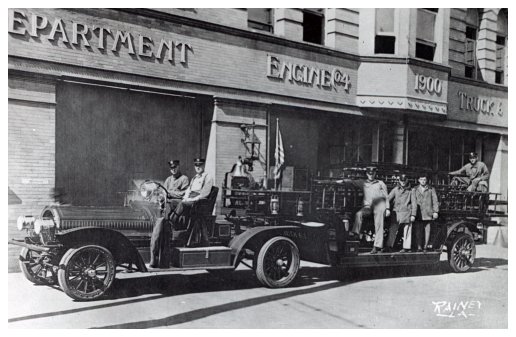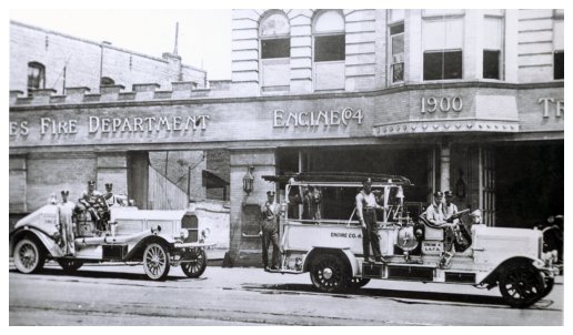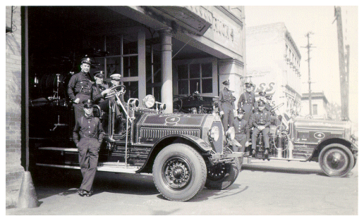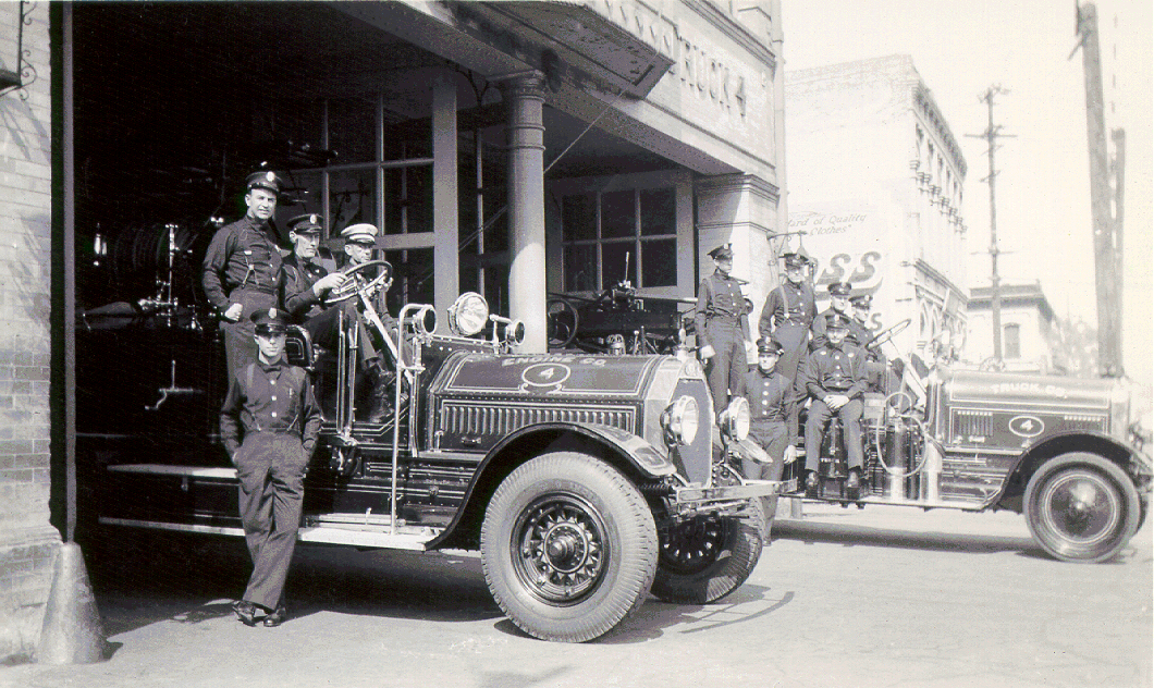 motorized in 1919 with a 1915 Moreland Hose Wagon (right) and a 1913 Gorham