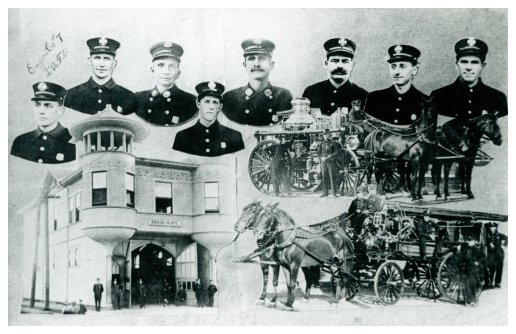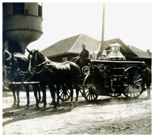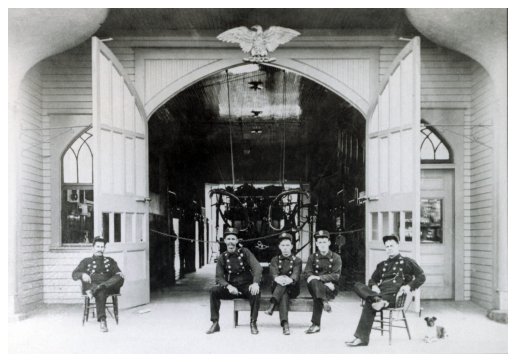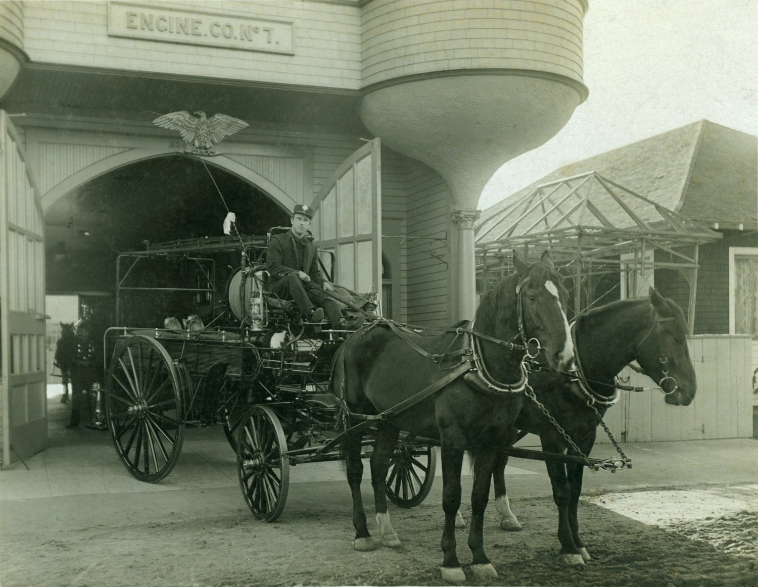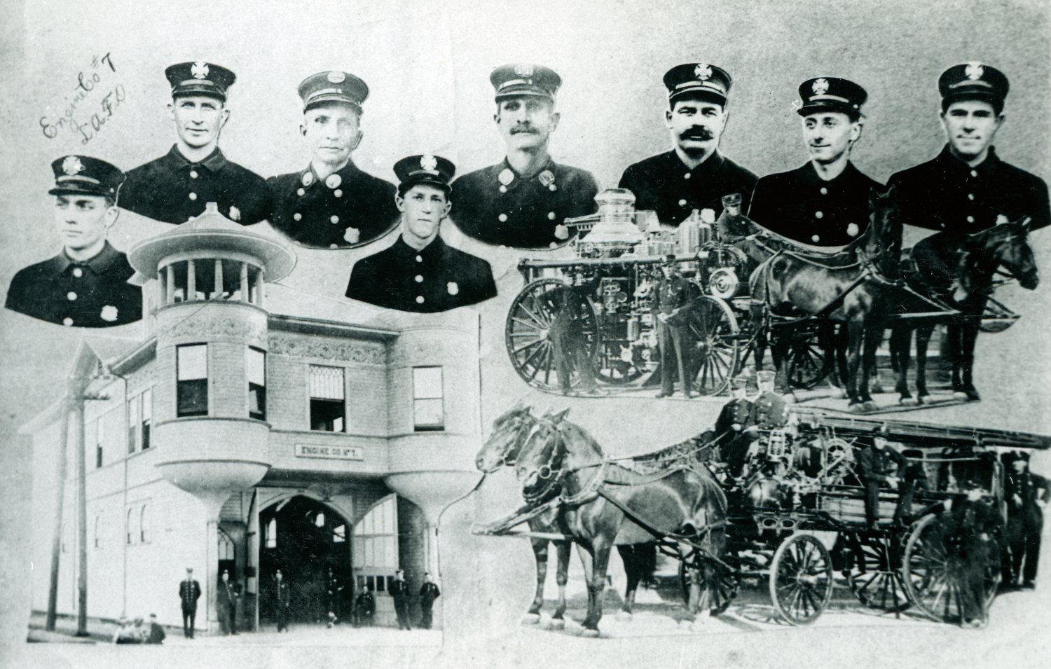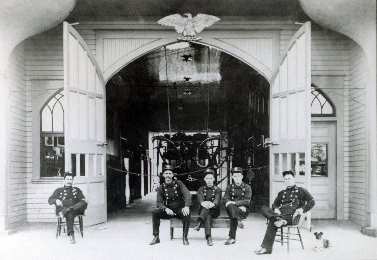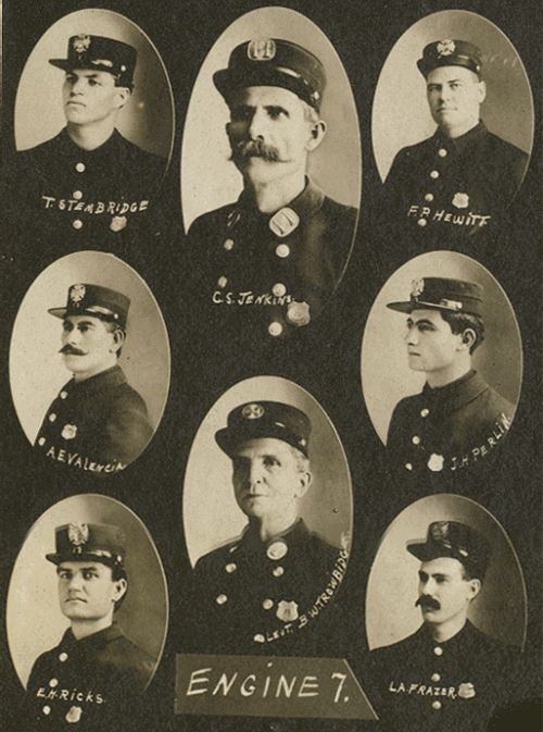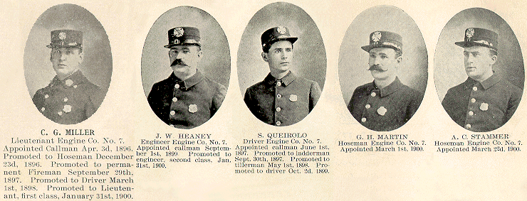 Hoseman F. E. Dill, Hoseman, Driver E. H. Ricks and Lieutenant B. W. Trowbridge