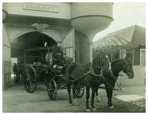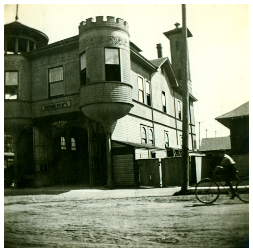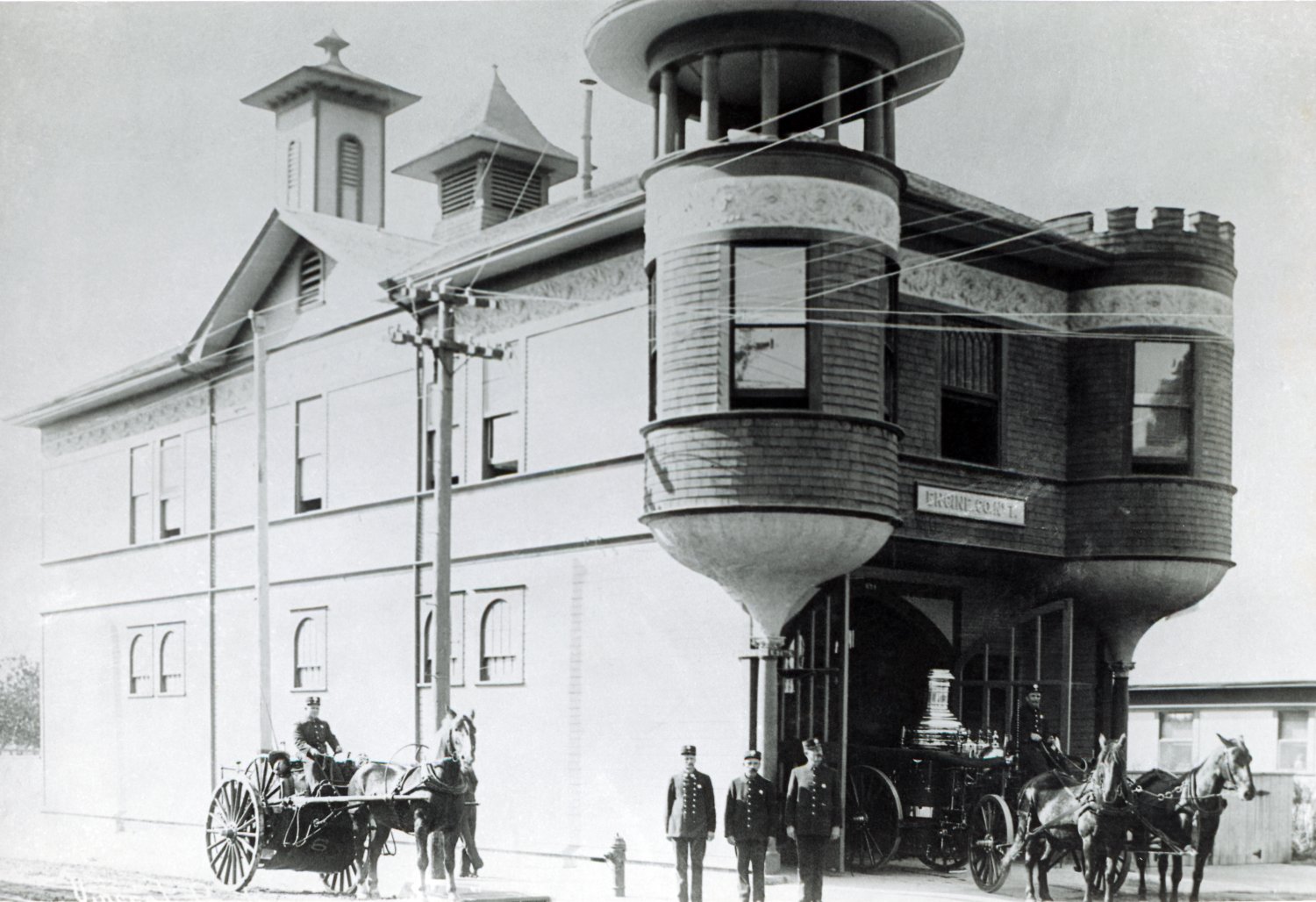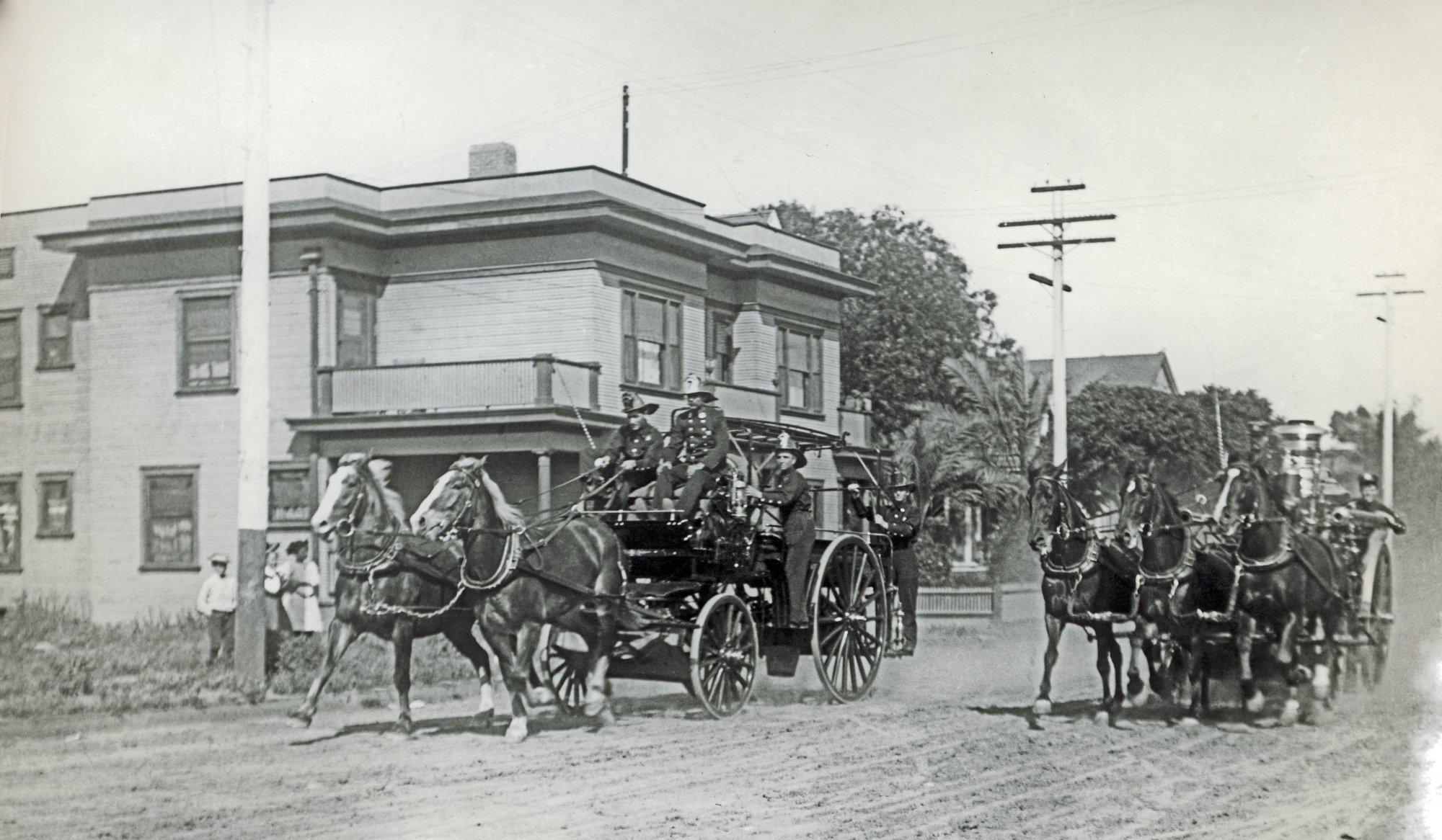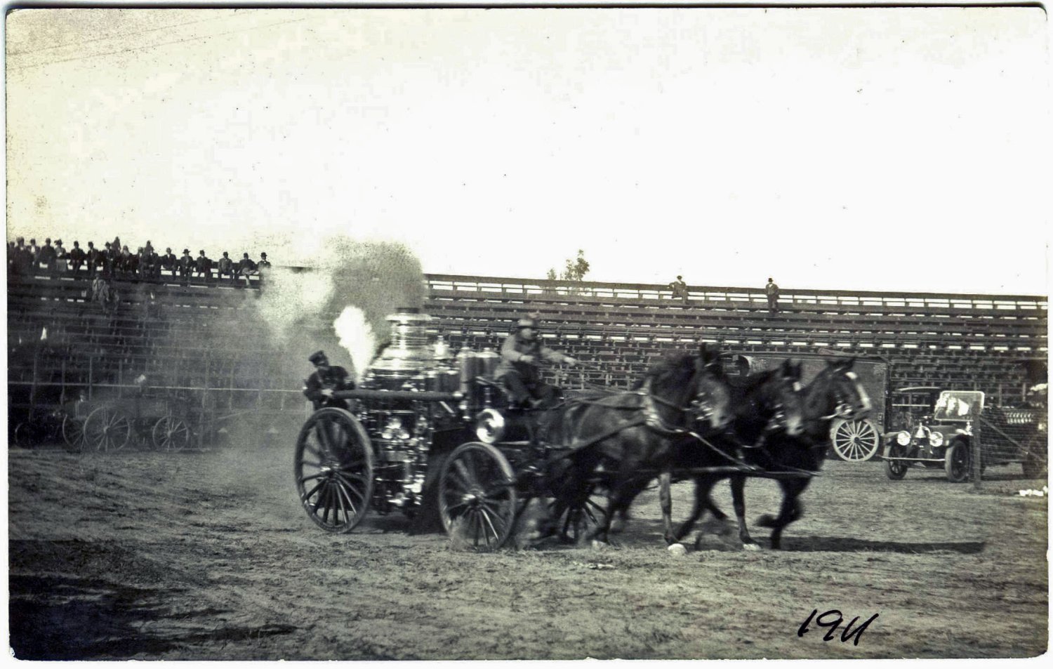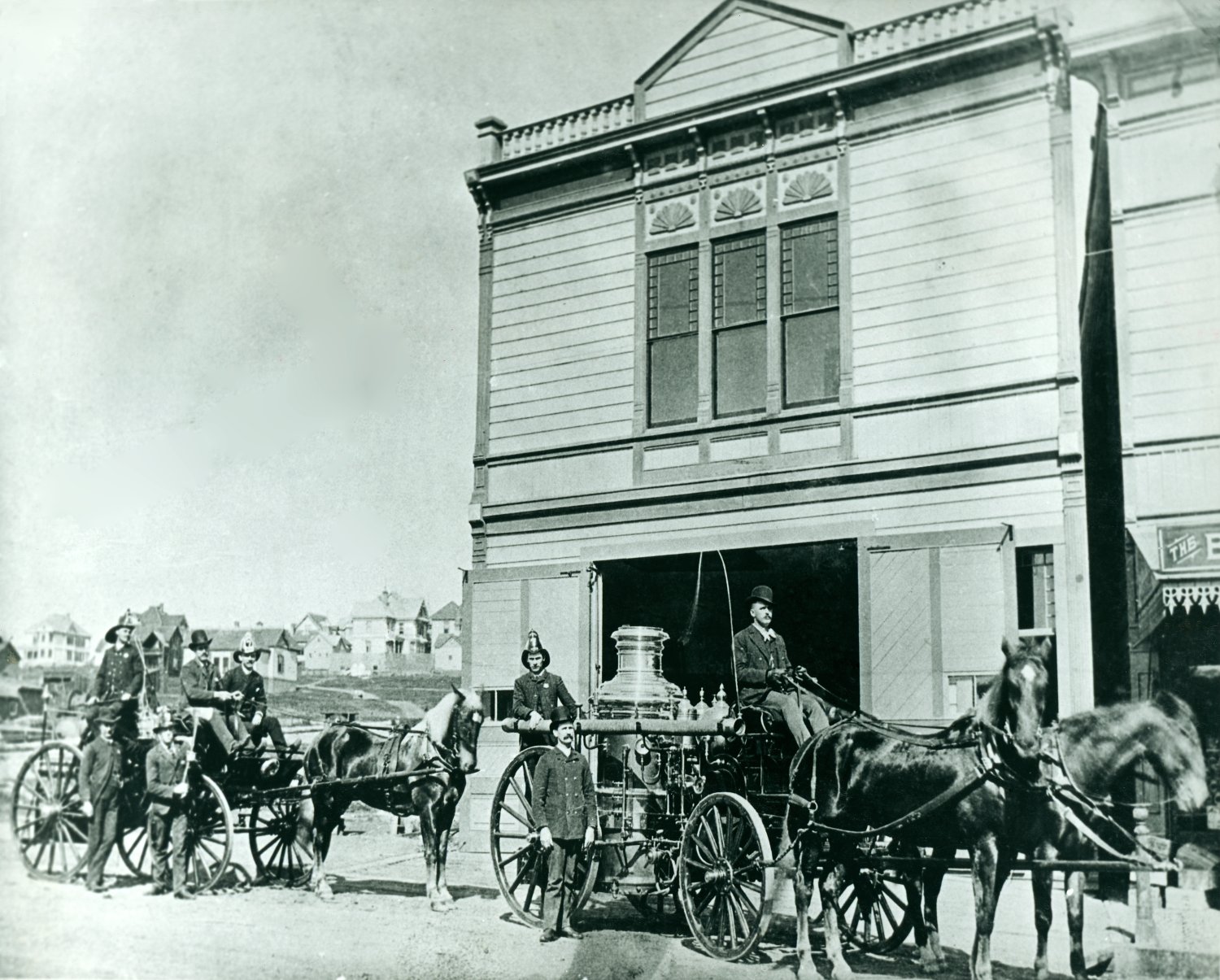 Hoseman F. E. Dill, Hoseman, Driver E. H. Ricks and Lieutenant B. W. Trowbridge