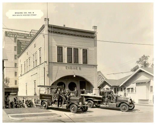 near Main Street 114 West Third Street 346-348 South Hill Street (Engine Co. 8 moved and this building became FD HQ's) 1839 South Hoover Street 1401 South Union Avenue Closed . 11351 Tampa Avenue, Northridge |