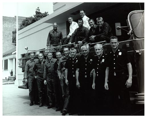 ?, Fireman Lee Cobb, ?, B/C Kenny Long, ?, Fireman Tim DeLuca, Fireman Stu Geers,