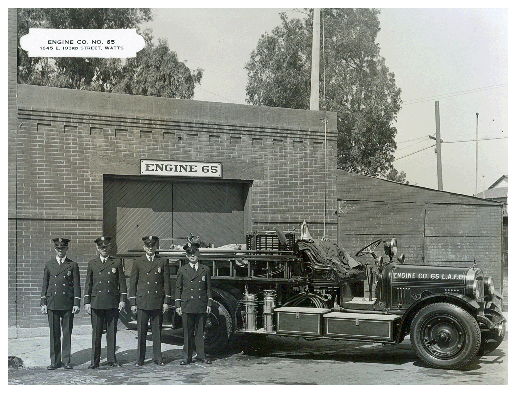 Watts Fire Department Watts annexed by the City of Los Angeles Engine Company 65 in service. ENGINE 65, RA65, RA265, EMS 13 |