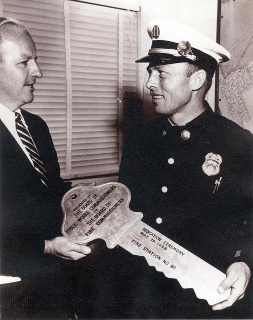 Captain Bill Shonborn receives the key to the new station at the Dedication Ceremony