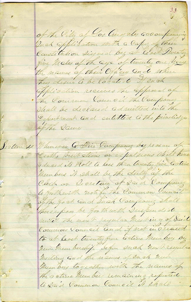 The Founding Documents Creating the Los Angeles Fire Department December 9, 1871 Page 3