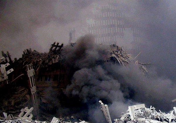 building creating the worst terror attack in history, a fire burned for