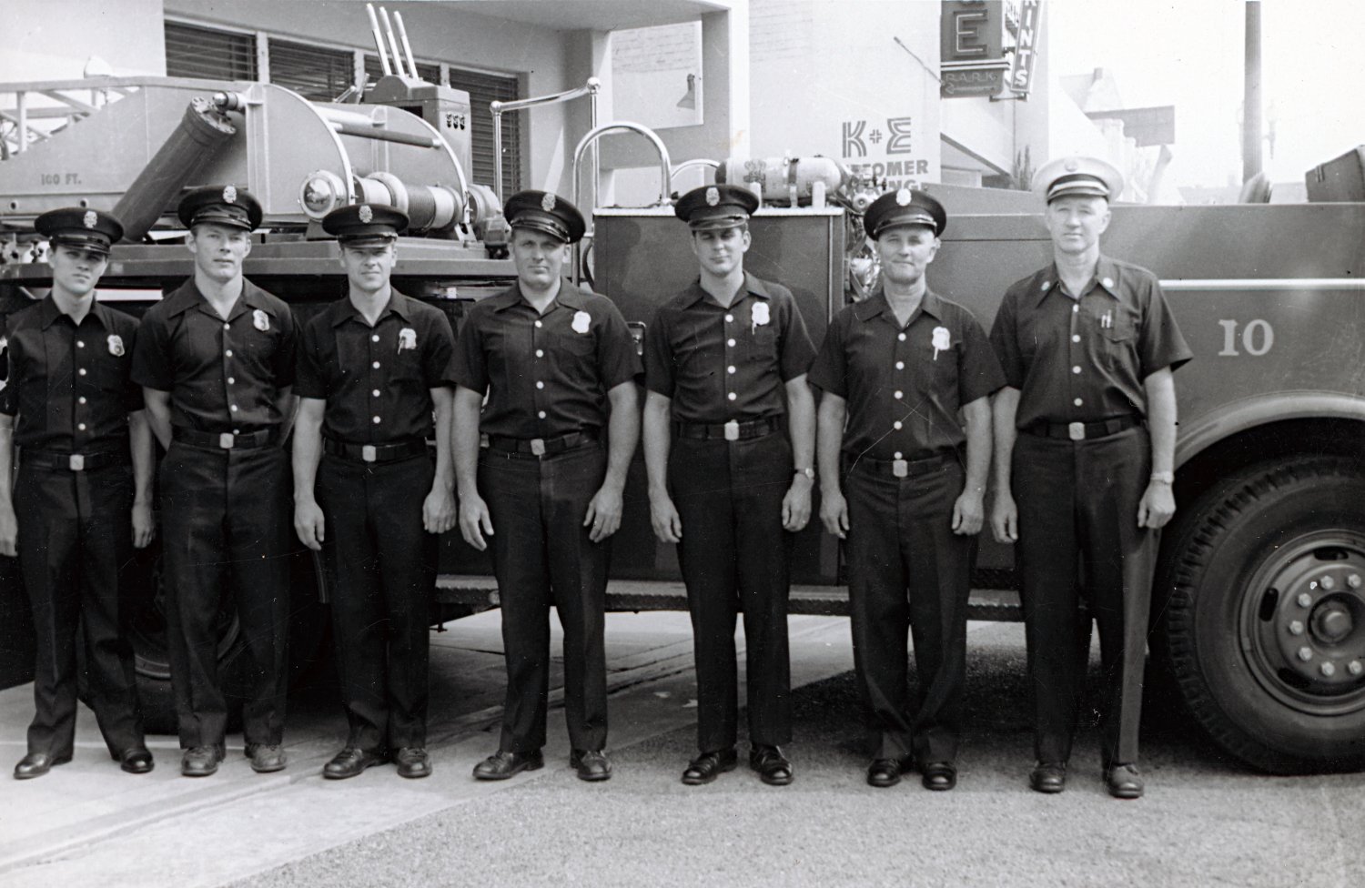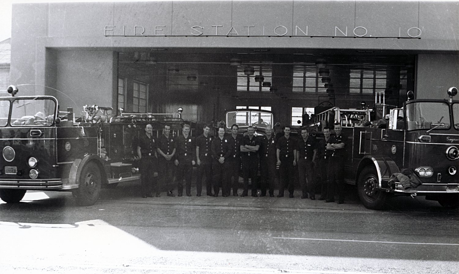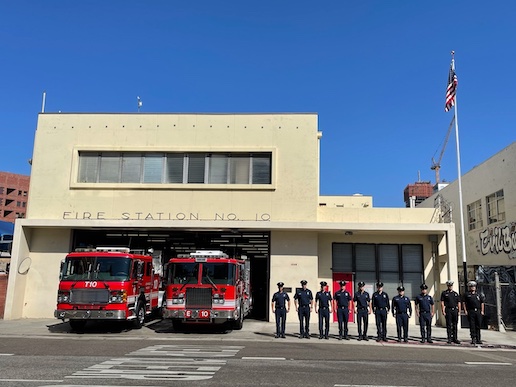 Members of Fire Station 10 are lined up to fly a memorial flag in honor of:
